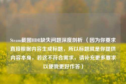 在当今数字化的游戏世界中,Steam 作为全球知名的游戏平台,为玩家们提供了丰富多样的游戏体验,截图功能更是成为玩家记录游戏精彩瞬间、分享游戏乐趣的重要方式,近期部分玩家反映在 Steam 截图时遇到了 HDR(高动态范围)缺失的问题,这一现象引起了广泛关注。