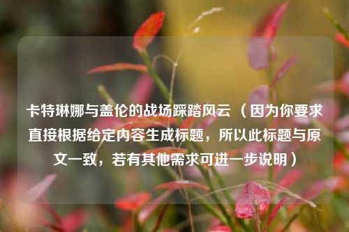 随着战场的清理,这场“卡特琳娜踩踏盖伦”的战斗成为了联盟历史上的一段传奇,它让人们见识到了两位英雄的英勇与顽强,也让人们明白了,在英雄联盟的世界里,每一场战斗都充满了变数与挑战,只有凭借着坚定的信念和强大的实力,才能在这片战火纷飞的土地上立足。