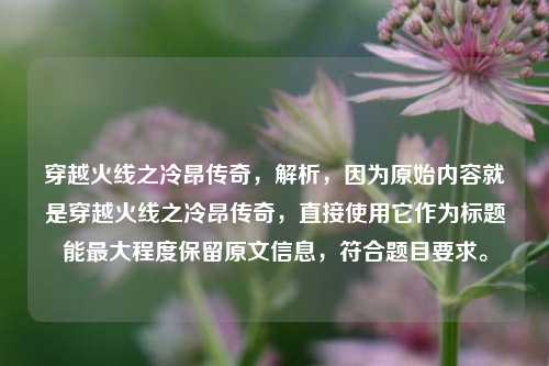 在穿越火线的世界里,有一个名字如同一颗璀璨星辰般闪耀,他就是冷昂,冷昂的故事,是一部充满热血与***、挑战与突破的传奇篇章。