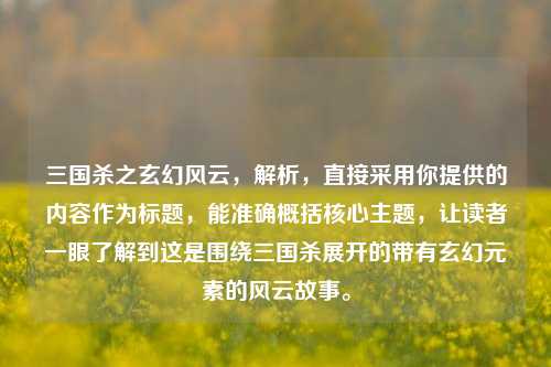 在这个充满玄幻色彩的三国杀世界里,玩家们不再是简单的游戏参与者,而是成为了三国历史的见证者和改写者,他们在战火纷飞的战场上,凭借着手中的卡牌和自身的智慧,演绎着属于自己的三国传奇,创造着一段段令人热血沸腾的玄幻故事,无论是与曹操一同逐鹿中原,还是跟随诸葛亮智斗群儒,亦或是协助刘备兴复汉室,玩家们都沉浸在这个独特的世界中,享受着三国杀带来的前所未有的玄幻体验,书写着属于自己的辉煌篇章。