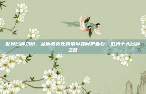 世界名牌奶粉以其卓越的品质、强大的品牌优势,为宝宝的成长提供了坚实的保障,在选择奶粉时,家长们要充分了解宝宝的需求和奶粉的特点,谨慎选择,为宝宝的健康成长挑选最合适的营养之源,相信在这些世界名牌奶粉的呵护下,每一个宝宝都能茁壮成长,拥有美好的未来。