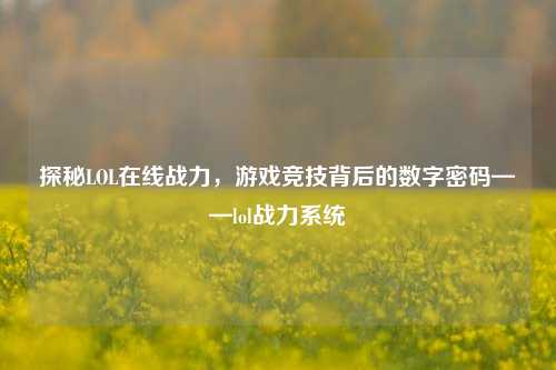 本文聚焦于探秘LOL在线战力,深入研究游戏竞技背后的数字密码——lol战力系统,该战力系统在LOL游戏中扮演着重要角色,它不仅反映玩家在游戏中的表现,还成为衡量玩家实力的一种独特方式,通过对战力系统的剖析,能了解其如何综合多方面因素来评估玩家,如游戏数据、胜负场次等,这一探秘有助于玩家更好地理解自身在游戏竞技中的位置,也为分析游戏竞技生态提供了一个独特视角,揭示了隐藏在游戏背后的战力数字密码对玩家和游戏发展的重要意义。