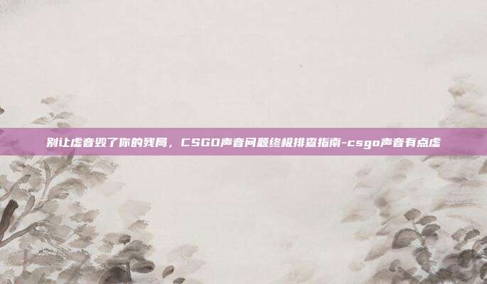 “CSGO声音有点虚”这个看似简单的问题,背后可能隐藏着硬件、系统、游戏设置三个层面的原因,当你下次再觉得声音不对劲时,可以按这个顺序排查:
