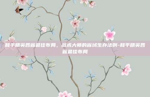 在《和平精英》的战场上,没有绝对的王者,只有因地制宜的智者,从东北的雪地到南海的雨林,从西域的沙漠到东南的丘陵,不同地域的玩家凭借对地形的深刻理解与独特的战术思维,总结出一套套适合本省的“最佳布局”方案,我们就来盘点一下那些令人叹服的“省域战术宝藏”。